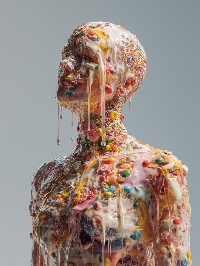 甘さと違和感が溶け合うスイーツ人体アート