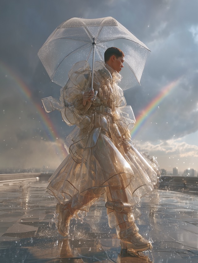 この作品について ふいに空がひらけた瞬間のような高揚感を閉じ込めた作品です。主役になっているのは、透明な素材が何層にも重なったクチュールドレスと、雨粒を細かく... -