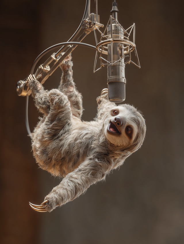 この作品について 思わず頬がゆるむのは、ナマケモノがただぶら下がっているのではなく、本当に歌いかけてくるように見えるからです。そう感じる理由は、逆さに吊られた... -