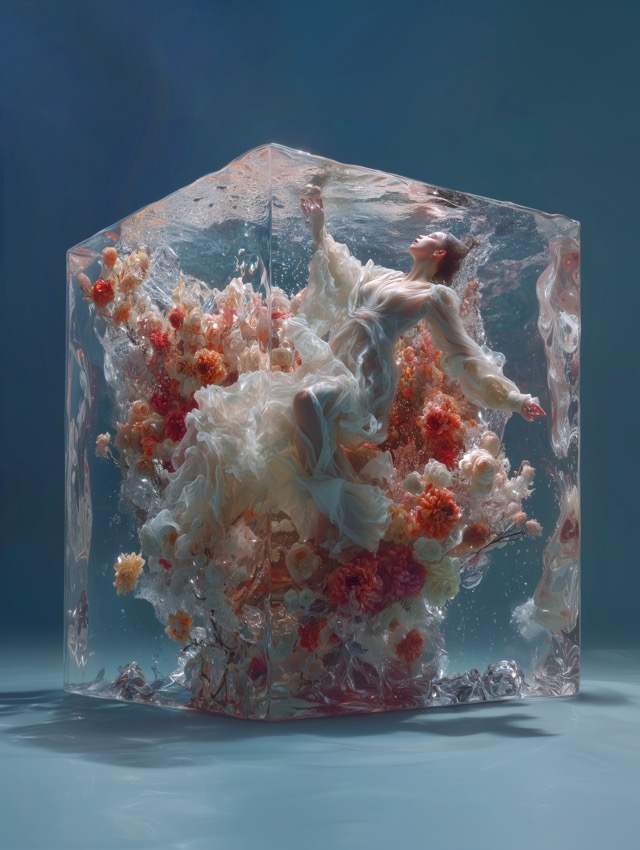 この作品について 最初に心をつかまれるのは、美しさが自由に広がるのではなく、透明な境界の中で静かに封じ込められていることです。なぜなら、この作品では白くやわら... -