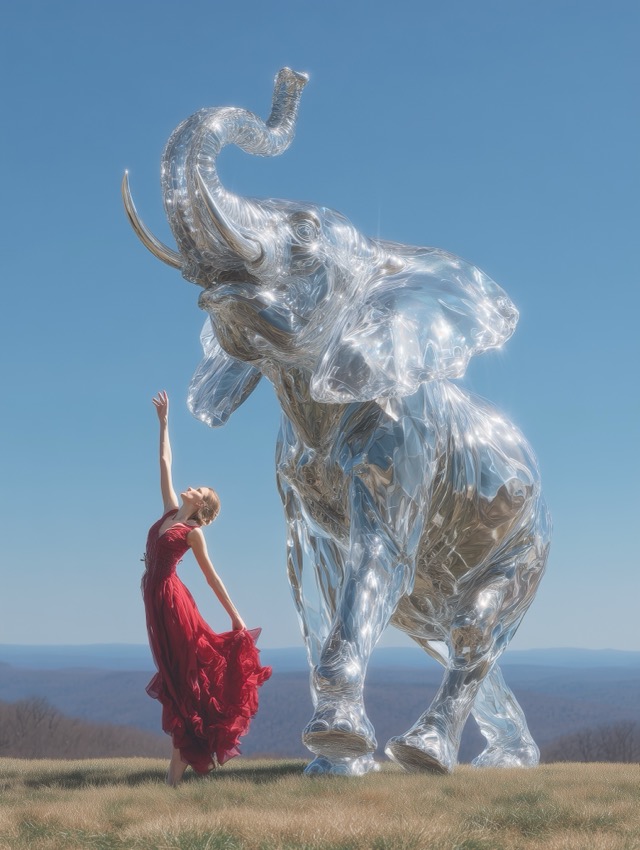 赤い舞と透きとおる象が描く共存