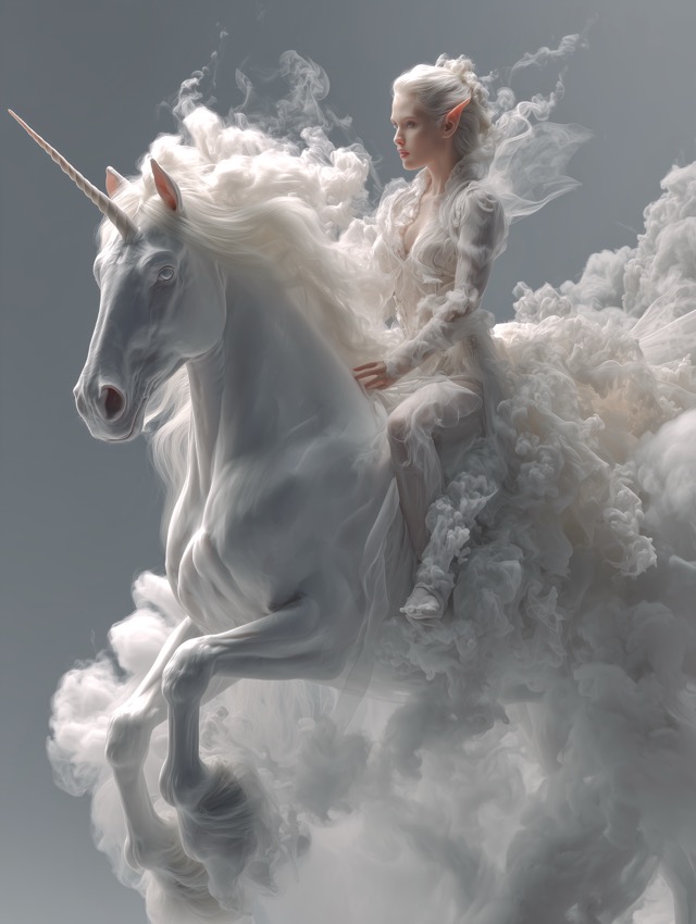 この作品について 目に入った瞬間に息をのむのは、この作品が白だけで構成されているのに、驚くほど豊かな表情を持っているからです。理由は、純白のユニコーンにまたが... -