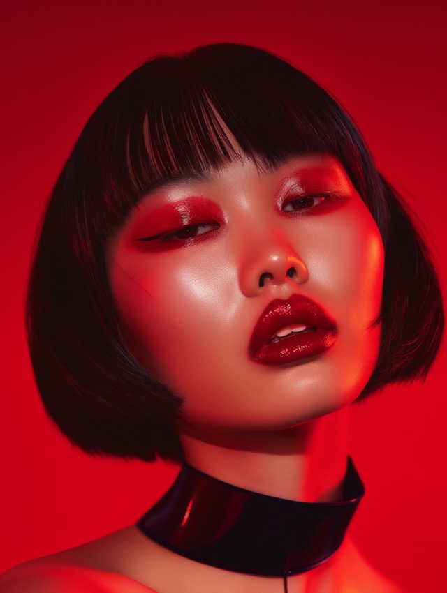 この作品について この作品は、アジアンビューティーの美しさを強烈な赤の世界観で表現したポートレートです。なぜなら、顔全体を包み込む深い赤い照明が、東洋的な顔立... -