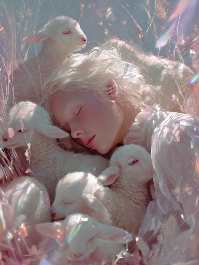 この作品について この作品の魅力は、羊に囲まれながら女性が静かに眠っているという不思議な状況にあります。理由は、「羊を数えると眠れる」という誰もが知るイメージ... -
