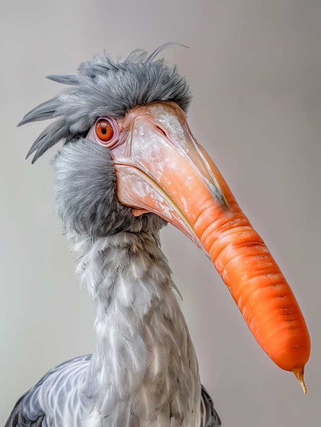 この作品について この作品は、リアルな鳥のポートレートにユーモアを混ぜることで強い印象を作ることを狙った作品です。理由は、ハシビロコウの鋭い目や灰色の羽毛の細... -