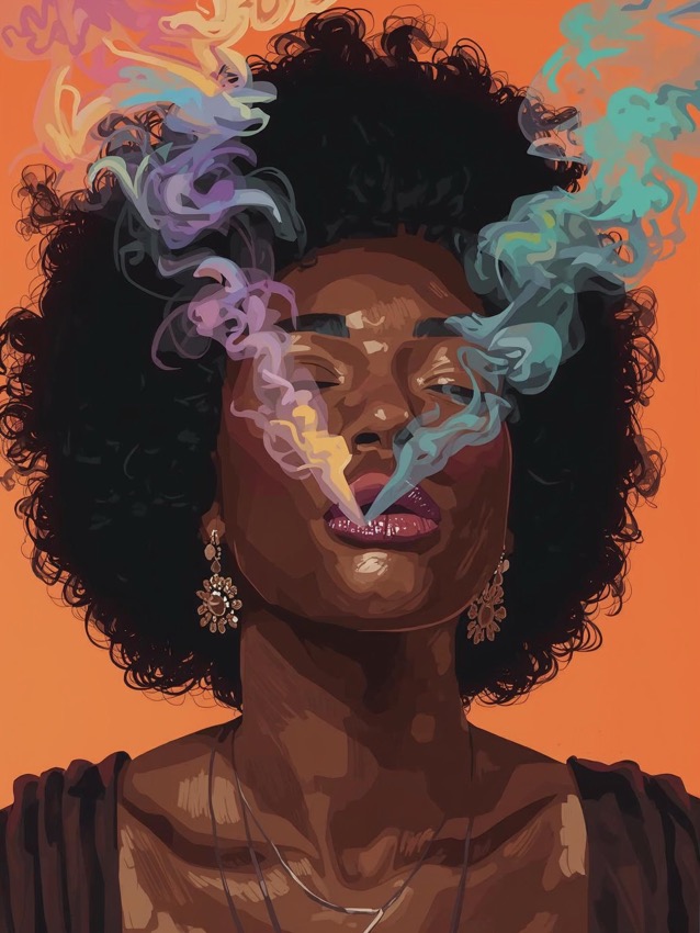この作品について この作品は、偶然から生まれた強いインパクトをそのまま魅力に変えた一枚です。理由は、顔の前を通る煙が一本ではなく左右に分かれ、しかも紫や水色、... -
