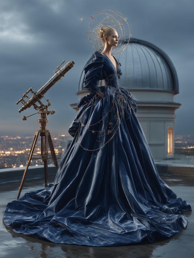 この作品について 夜を見上げるための一枚ではなく、夜そのものへ近づいていく感覚を描いた作品です。天文台の丸いドームと真鍮の望遠鏡が置かれた屋上に、深い藍色のド... -