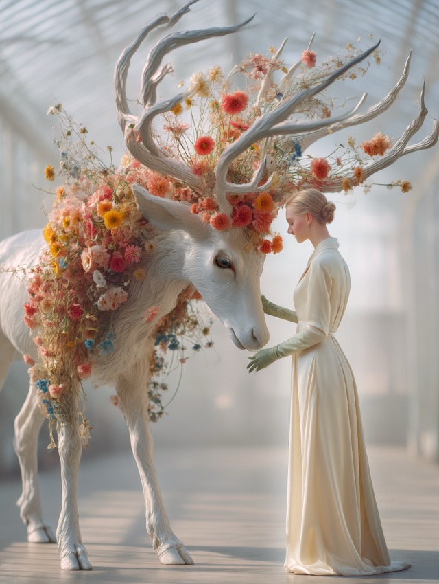 花をまとう白い鹿の幻想