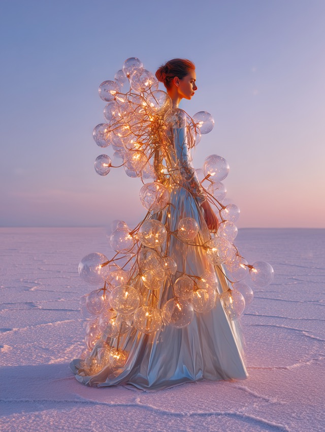 この作品について 夕景の静けさに立つ人物の存在感が、まず視線を強くつかみます。冷たい世界の中心にだけ熱を宿したような見え方になっているのは、淡い青白色のロング...